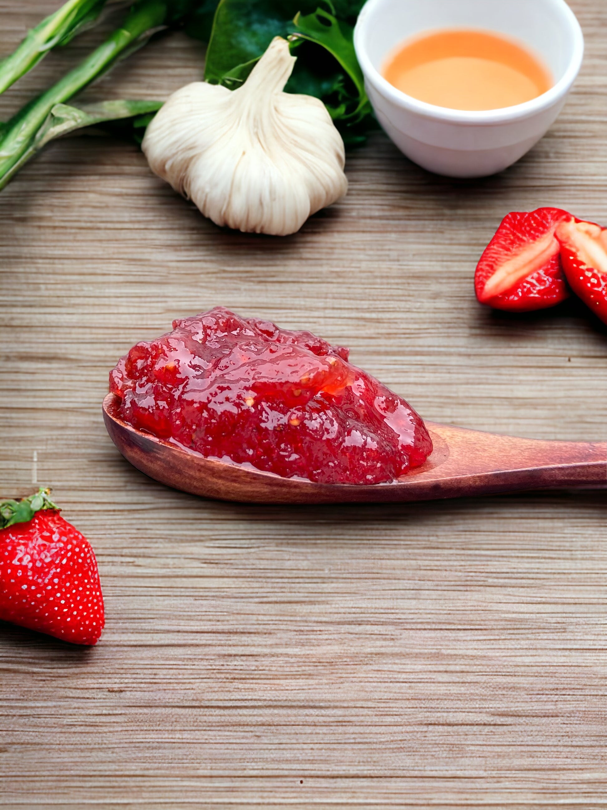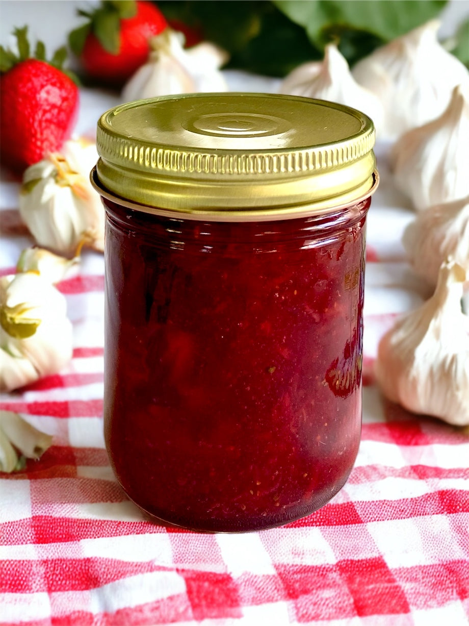 This jam is a blend of strawberries, garlic, with a touch of oregano. Ok I know what you're thinking but hear me out. When this jam is paired well it is absolutely delicious! This is definitely a jam that you bring out of your entertaining arsenal that will impress your guests as they swoon around your appetizer spread. I found one of the best ways to enjoy it is on a crostini with ricotta cheese and then add a spoonful of this amazing jam on top, and lastly topped off with a drizzle of olive oil....SO GOOD!!! This jam is for the food enthusiast who loves to experience different flavors. Come on and step out of your food comfort zone!